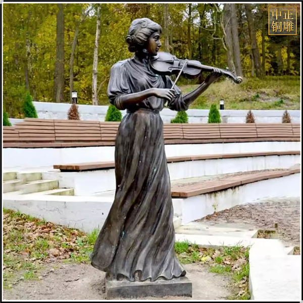 女孩拉小提琴園林雕塑